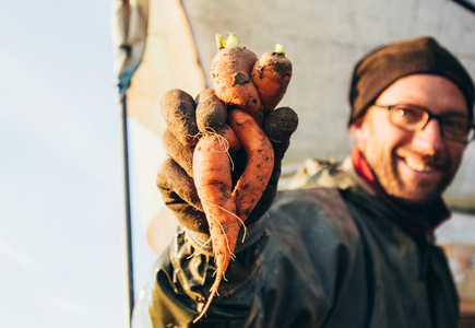 Micha ist fürs Obst- und Gemüsesortiment zuständig. Er stellt unsere Gemüsekisten zusammen.